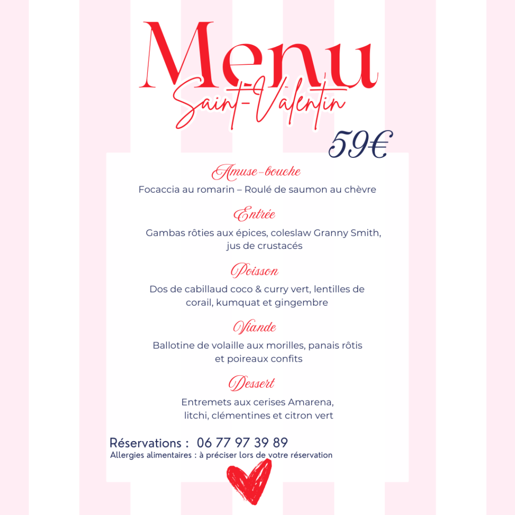 Chaque jour, le restaurant propose un menu 100% fait maison avec des produits frais et de saison.